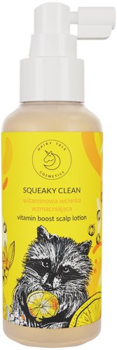 Wcierka Hairy Tale Squeaky Clean to prawdziwy koktajl witamin, w tym C, B oraz E, które mają kluczowe znaczenie dla zdrowia włosów. Ekstrakt z tarczycy bajkalskiej oraz aceroli wzmacnia działanie składników aktywnych, stymulując wzrost włosów i poprawiając kondycję skóry głowy.