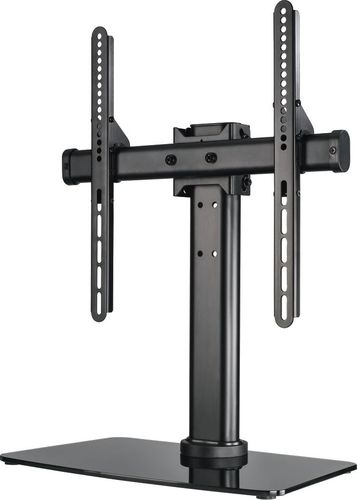 System Easy-Fix do łatwego i bezstopniowego ustawiania telewizora. Zwijarka kabla zapewnia porządek i wymagane odciążenie kabla. Zamontowane urządzenie zajmuje mało miejsca w pomieszczeniu. Stabilny stojak do telewizora, który zajmuje mało miejsca na szafce RTV. . Wąska podstawa. Podstawa uchwytu zajmuje mało miejsca na blacie, dzięki czemu mieści się nawet na mniejszych szafkach. Stojak jest bardzo stabilny i utrzymuje udźwig do 40 kg.. Łatwy montaż. Telewizor jest mocowany do stojaka za pomocą otworów (standard VESA) i dołączonych do zestawu śrub. Dzięki zastosowaniu systemu Easy-Fix montaż jest bardzo łatwy i zajmuje mało czasu. . Regulacja ustawienia telewizora. Telewizor możesz zamontować na jednej z trzech wysokości. Dodatkowo masz możliwość regulacji kąta nachylenia ekranu do przodu i do tyłu (- 10°; + 5°) oraz obrotu o 90°. Wszystko po to, by mieć idealny obraz w wybranym przez Ciebie miejscu. . Uporządkowane kable. Kable można zamocować z tyłu uchwytu do jego kolumny i w ten sposób ukryć je, dzięki czemu telewizor będzie się bardzo dobrze prezentować. . Cechy:. Uniwersalny stojak do telewizorów z płaskim ekranem. Stojak zajmuje mało miejsca na blacie. Czarna podstawa z bezpiecznego szkła. Montaż za pomocą otworów (standard VESA). System Easy-Fix do łatwego ustawiania telewizora. Idealny w przypadku uszkodzenia lub utraty oryginalnego stojaka. Organizer do kabla zapewnia porządek i wymagane odciążenie kabla. Przekątna telewizora: od 81 do 165 cm (32" do 65"). Standard VESA do 600 x 400. Możliwość bezstopniowego pochyłu telewizora o +5°/-10°. Możliwość obrotu o 90°. 3 wysokości montażu – wysokość od 58,4 do 72,4 cm.