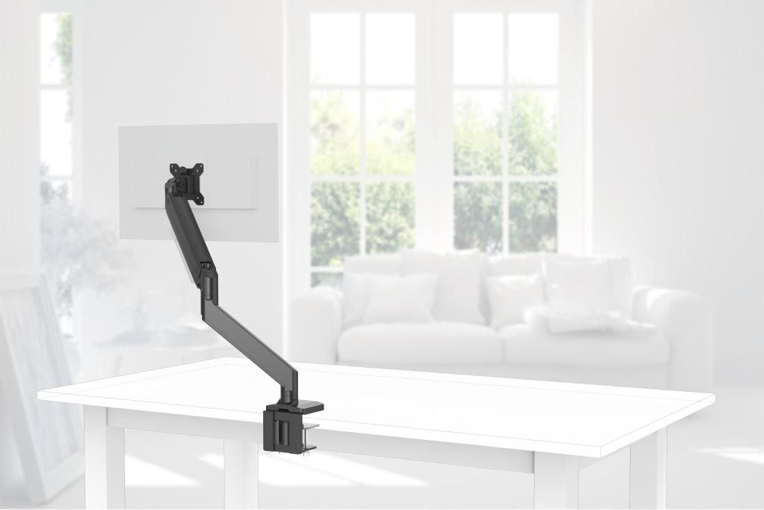 Uchwyt biurkowy umożliwia przymocowanie go do blatu za pomocą zacisku. Taki rodzaj uchwytu jest skierowany przede wszystkim do osób chcących zachować miejsce na biurku, co pomoże poprawić nie tylko ergonomię pracy, ale również zapewni czystość i nienaganną estetykę przy stanowisku komputerowym.