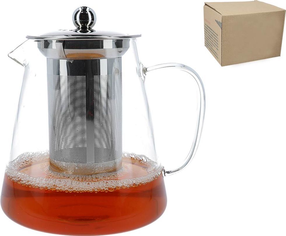Szklany czajnik z zaparzaczem. Doskonały do przyrządzenia naszej ulubionej herbatki na chłodne wieczory.