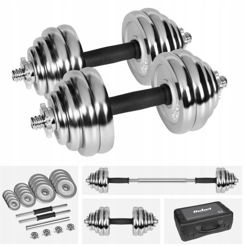 Hantle żeliwne chromowane regulowane w walizce z gryfem, zestaw 30kg REBEL ACTIVE