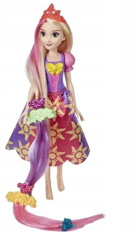 W klasycznej wersji Disneya Roszpunka ma bardzo długie włosy, a dzięki zabawie fryzjerskiej Roszpunki jej włosy stają się jeszcze dłuższe. Lalka ma 2 kolorowe przedłużki do włosów, które można przypiąć do jej włosów.