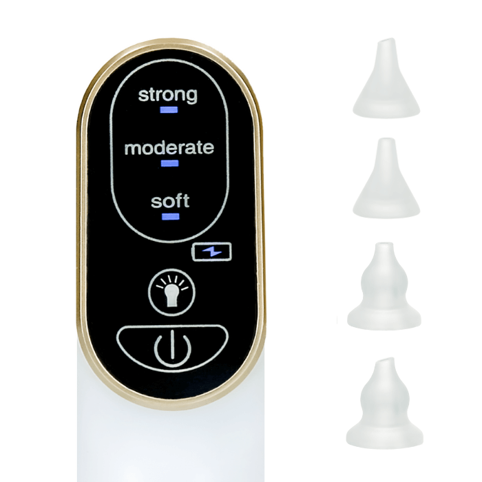 Aż 3 tryby pracy umożliwiają dopasowanie siły ssania do wieku dziecka oraz gęstości wydzieliny. Aspirator X10 jest wyjątkowo cichy i delikatny, został zaprojektowany tak, aby nie stresować malucha podczas odciągania. Lampka LED świecąca delikatnym światłem ułatwia korzystanie z urządzenia w nocy. Lampa nie razi w oczy, a jedynie doświetla jamę nosową, aby umożliwić jej oczyszczenie w ciemnym pomieszczeniu. Zestaw zawiera 2 końcówki dla noworodków i niemowląt od 1 dnia życia oraz 2 końcówki dla niemowląt i dzieci do 1 roku życia.