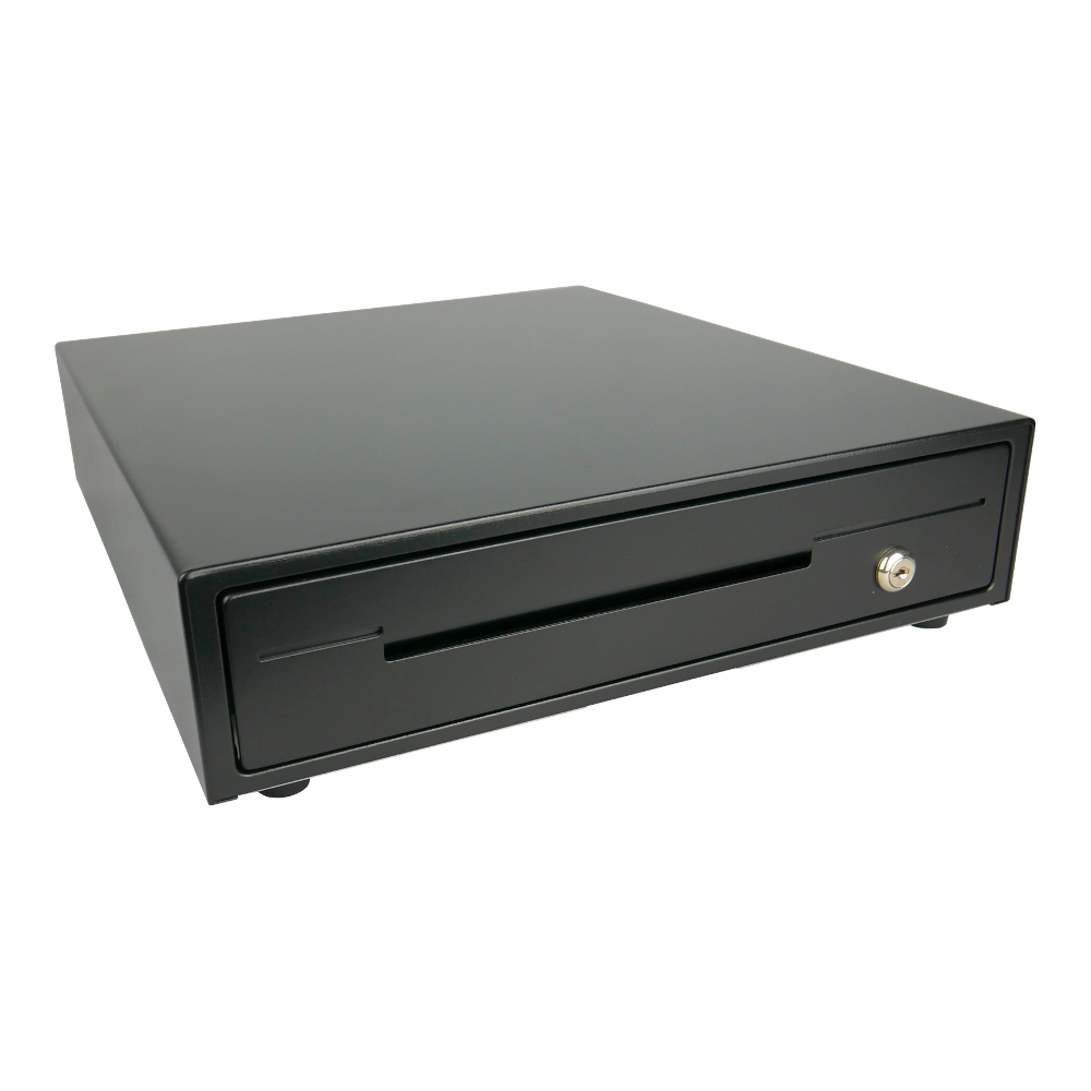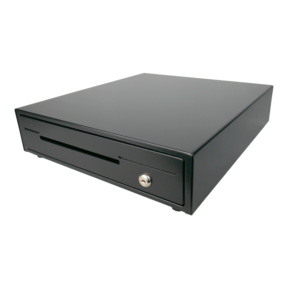 Lekkie i płynne otwieranie szuflada zawdzięcza systemowi przesuwnemu opartemu na wałkach z tworzywa sztucznego, umieszczonych na specjalnych szynach. Szuflada oferuje współpracę z większością dostępnych na rynku urządzeń fiskalnych, jak kasa drukarka paragonów czy terminal POS, za sprawą kabla ze złączem RJ12, gdzie napięcie cewki wynosi 6/12 V.