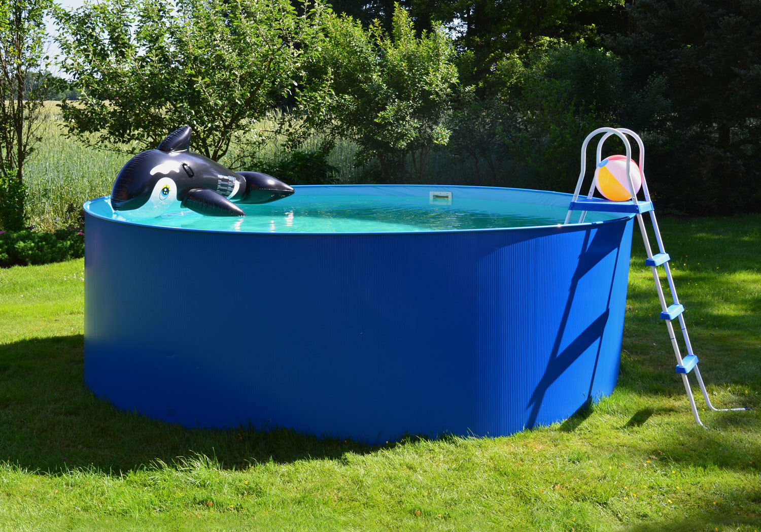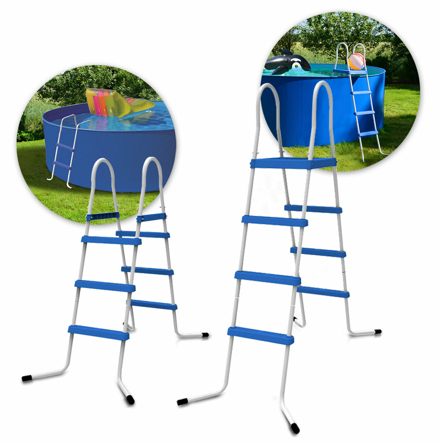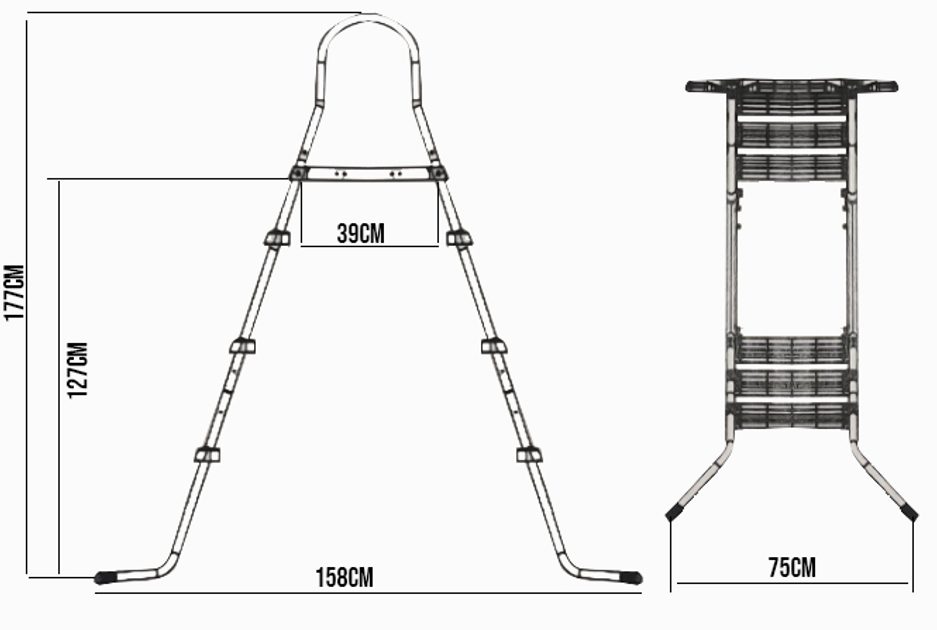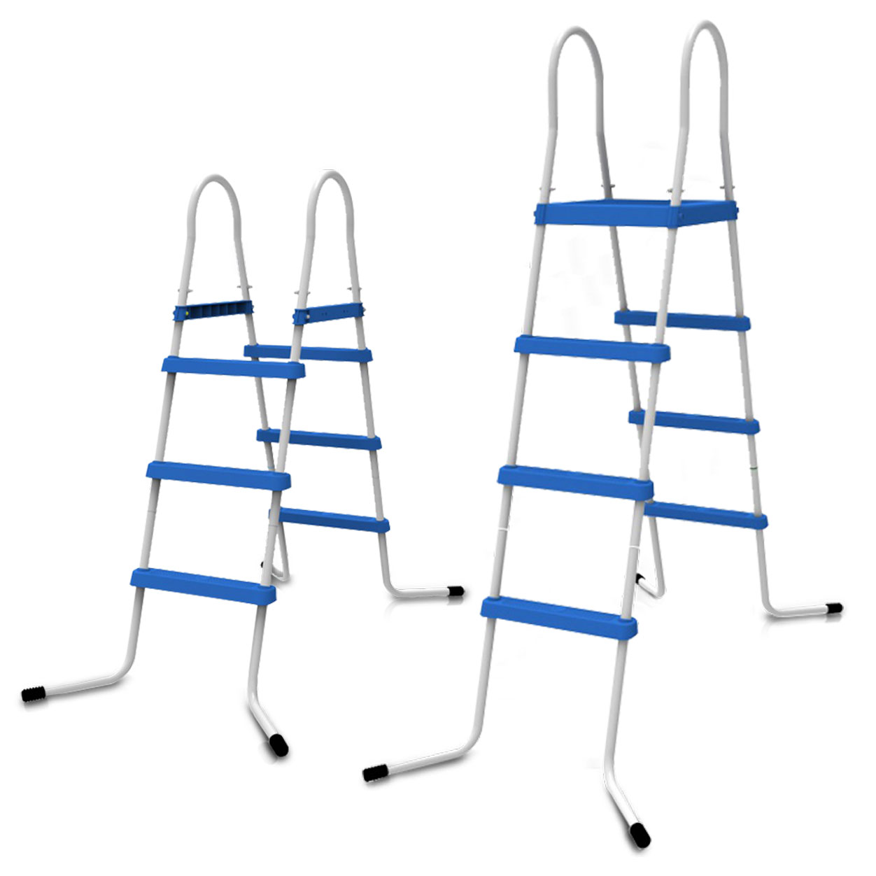 Drabinka do basenów o wysokości ścianki do 122 cm. Wykonana ze stalowej ramy, różnych gatunków tworzyw sztucznych z bieżnikami, odpornymi na działanie promieniowania UV oraz środków chemicznych do basenów.