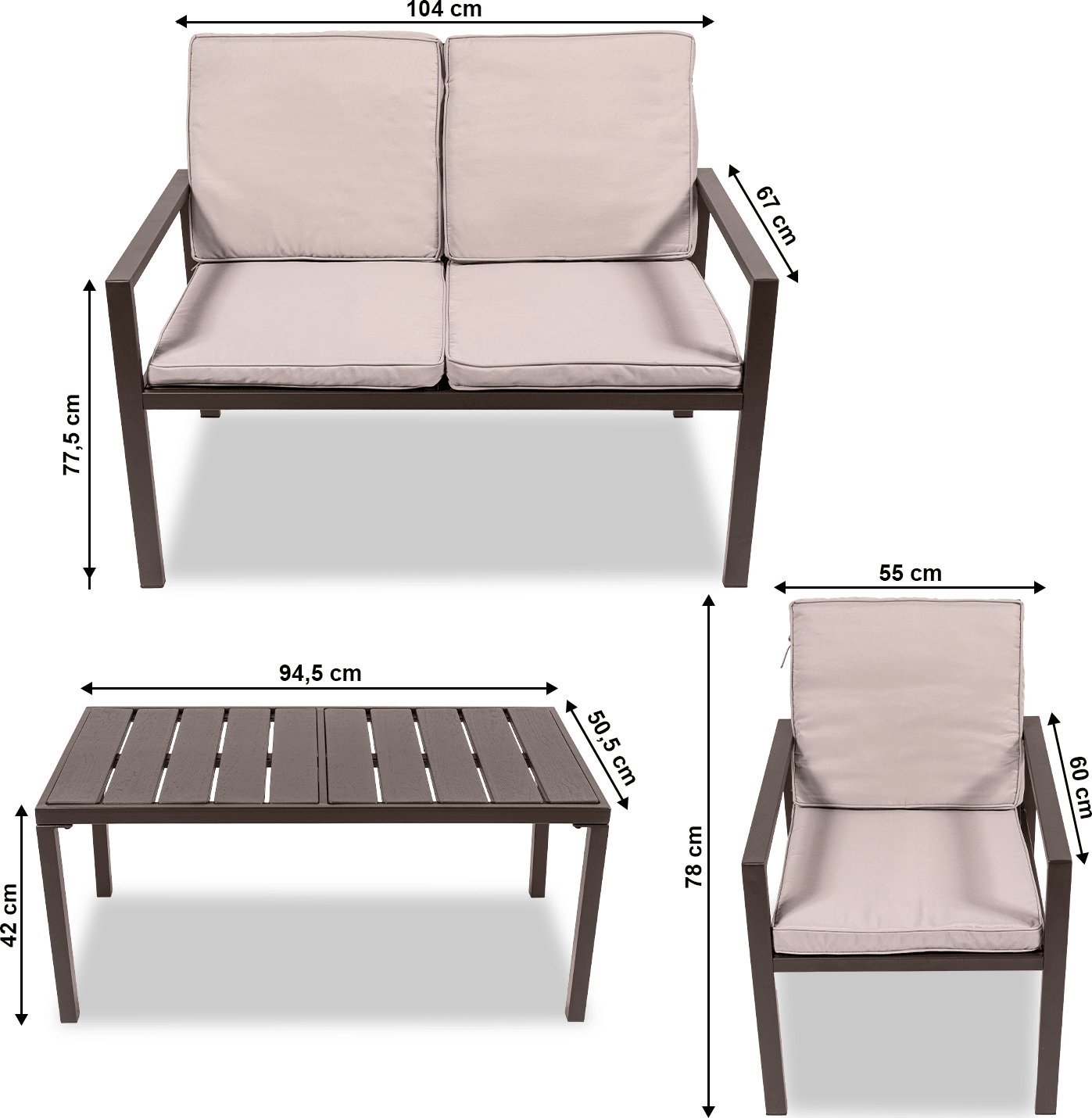 Heckermann Zestaw mebli ogrodowych 4 os. kanapa stół krzesło ogrodowe Heckermann AC-WS008-1