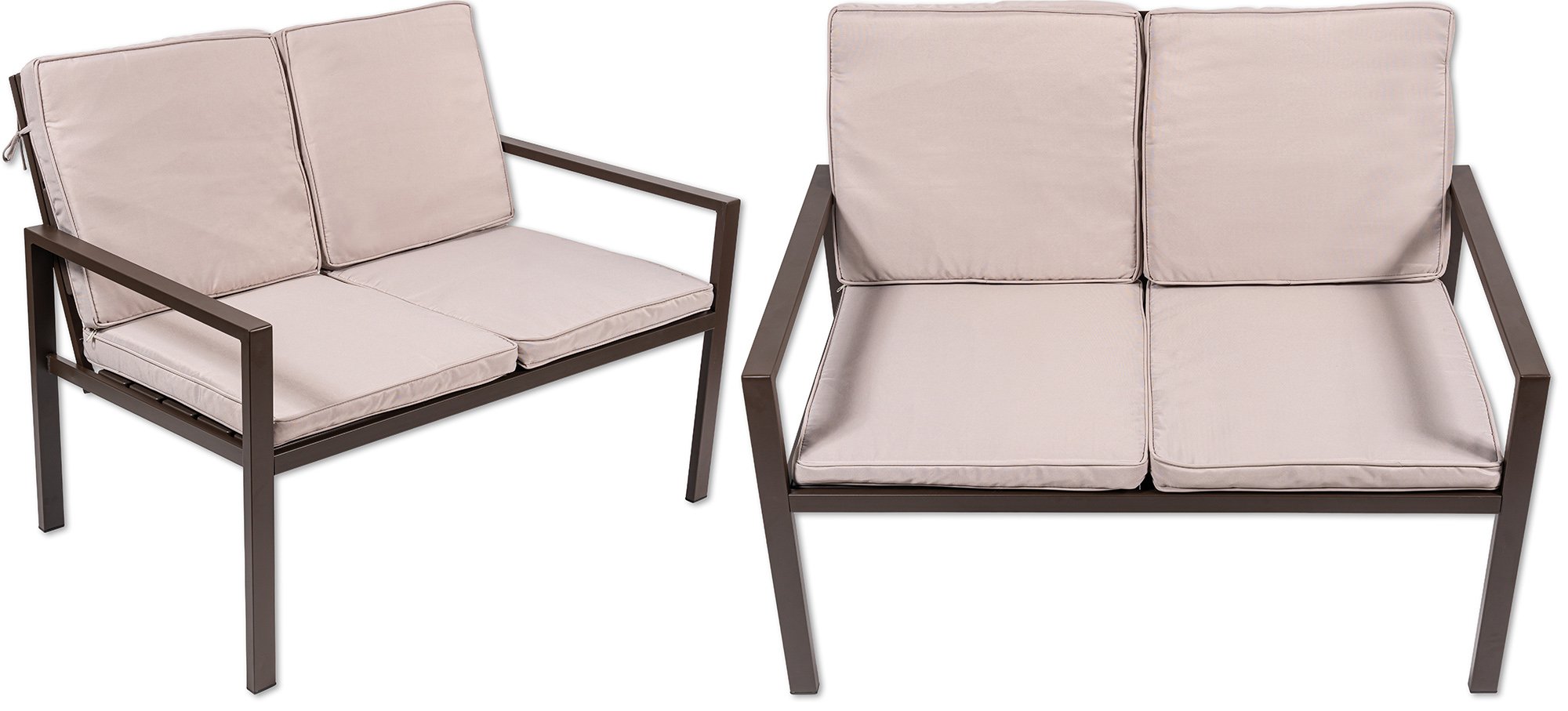 Kanapa dwuosobowa to doskonałe miejsce na relaks. Szerokie siedzisko i wysokie oparcie zapewniają wygodę, a solidna metalowa rama gwarantuje stabilność.