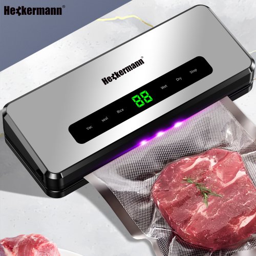 Heckermann Zgrzewarka próżniowa automatyczna do pakowania jedzenia + folie Heckermann 3700 Srebrna Pakowarka żywności 140W