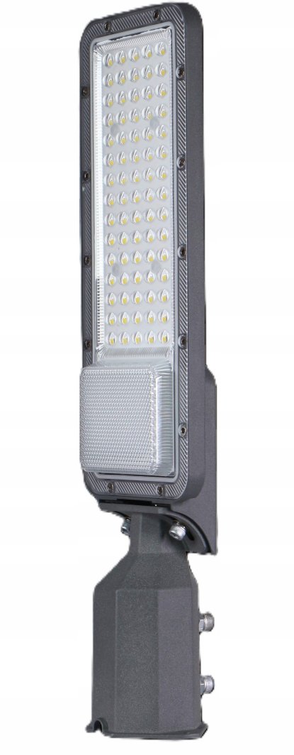 Oprawa LED ULICZNA FX 50W 7500lm 4000K IP65 HSL050FN to nowoczesne rozwiązanie oświetleniowe, które dostarcza intensywne, neutralne białe światło, idealne do oświetlania dróg oraz placów. Dzięki technologii LED, lampa zapewnia wysoką efektywność świetlną, co czyni ją znakomitym wyborem do zastosowań w przestrzeniach publicznych.