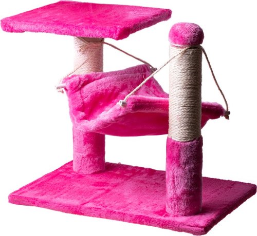 Między słupki zamontowano hamak, który da kotu przyjemne miejsce na odpoczynek oraz platformę do spania.