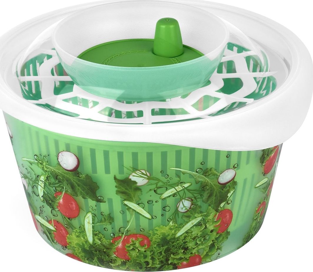 Model korzysta z mechanizmu obrotowego obsługiwanego ręcznie. W suszenie sałaty nie musisz wcale wkładać wiele wysiłku oraz czasu. Konstrukcja, która płynnie oddziela suszoną sałatę od wody poprzez zawieszony w powietrzu koszyk. Produkt wykonany z transparentnego plastiku z zielonymi akcentami oraz prostym i smakowitym nadrukiem.