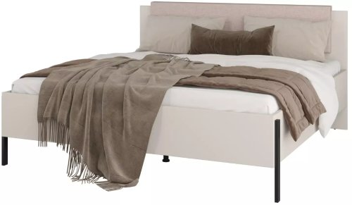 Rama łóżka została wykonana z trwałej laminowanej płyty meblowej, co zapewnia stabilność oraz ułatwia utrzymanie czystości. Dodatkowo, czarne metalowe nogi malowane proszkowo nadają całości lekkości i nowoczesnego charakteru.