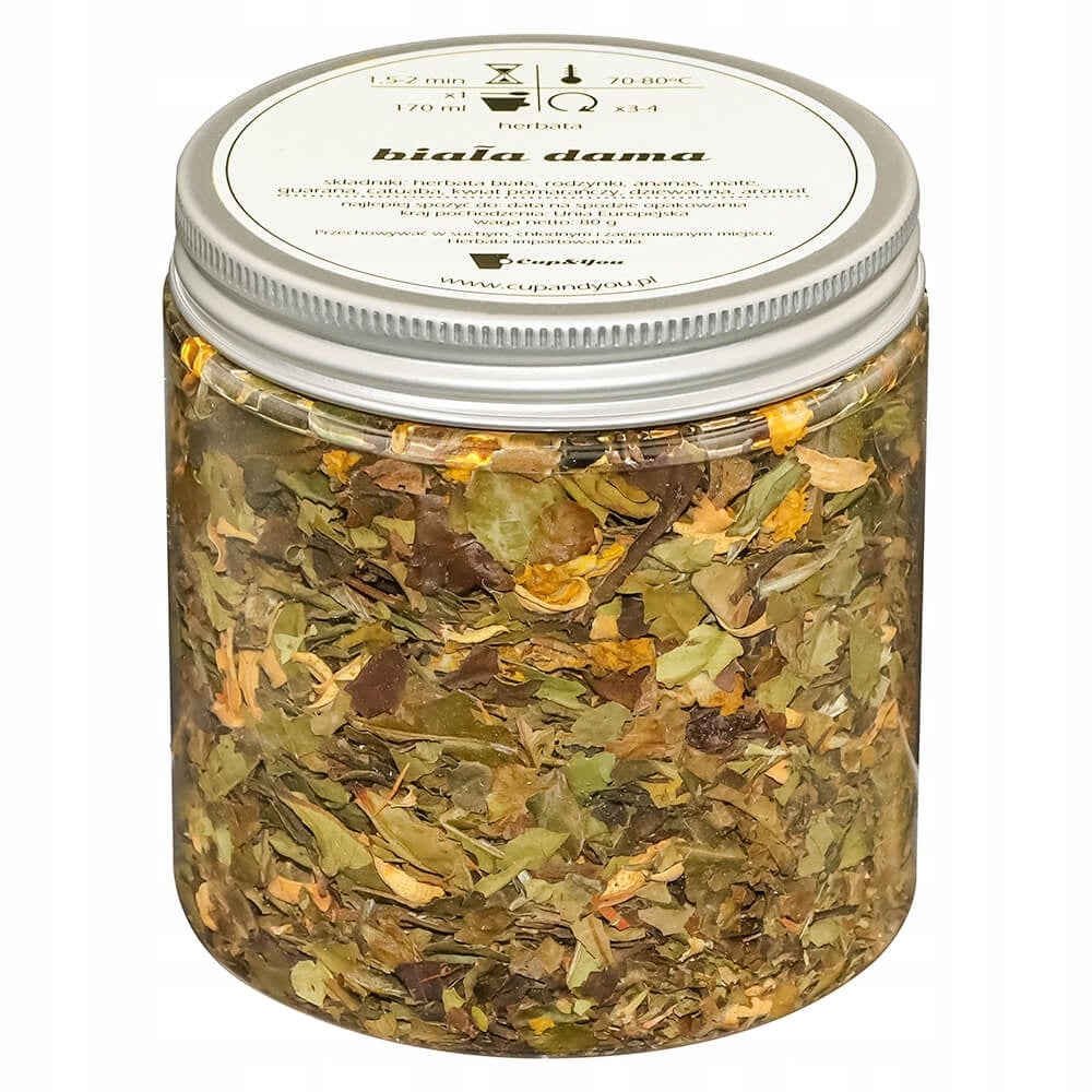 Herbata biała BIAŁA DAMA ananas kwiat pomarańczy dziewanna rodzynki 80g - sypana liściasta herbata PREMIUM Cup&You