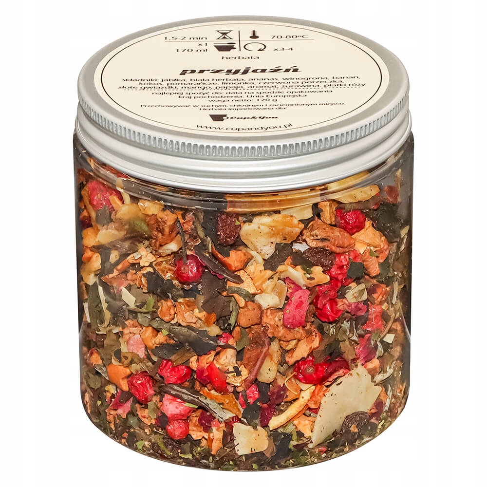 Herbata biała PRZYJAŹŃ papaja mango jabłka żurawina czerwona porzeczka 120g - sypana liściasta herbata PREMIUM Cup&You