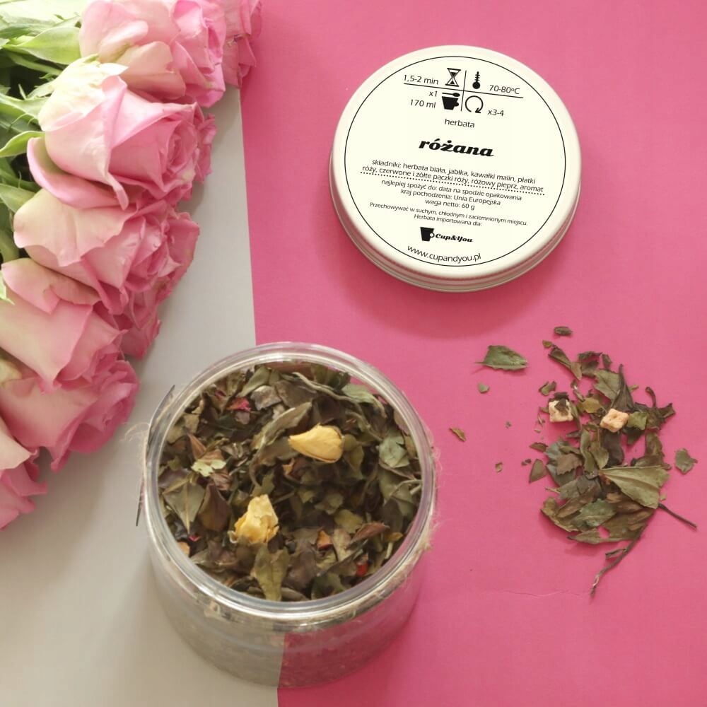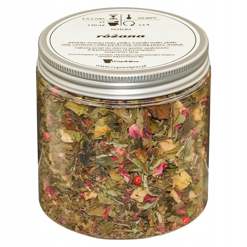 Herbata biała RÓŻANA jabłka maliny płatki i pączki róży różowy pieprz 60g - sypana liściasta herbata PREMIUM Cup&You
