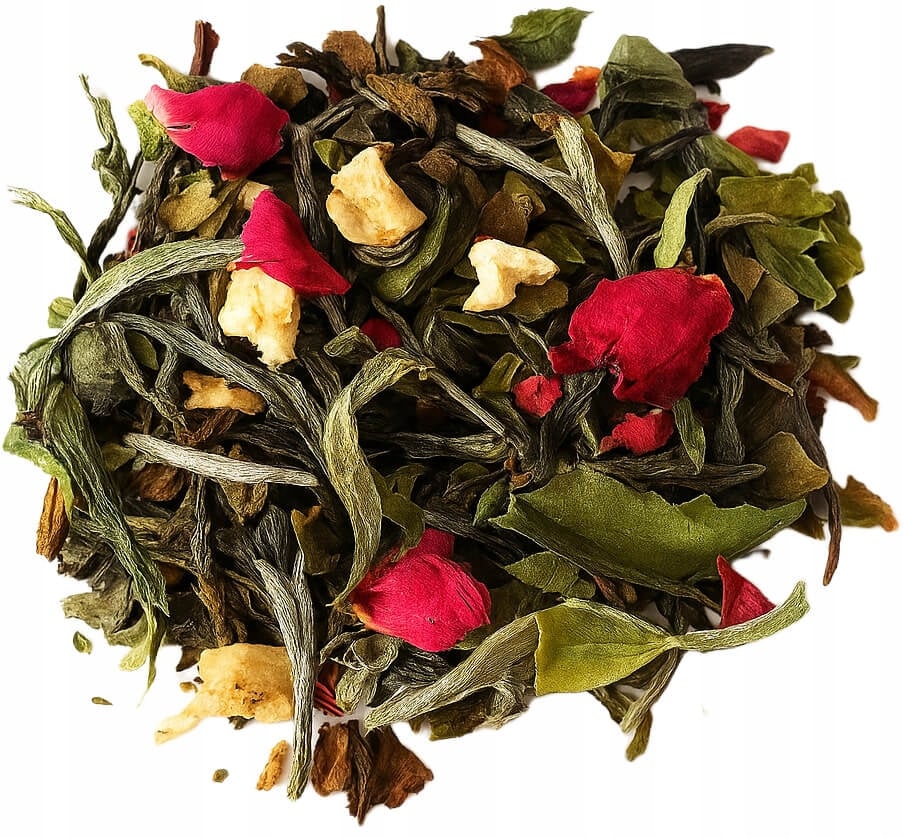 Subtelna i zmysłowa mieszanka, która łączy delikatność białej herbaty z kwiatowym aromatem róży i owocową świeżością malin. Idealna na chwilę odprężenia w ciągu dnia lub wieczorny relaks.