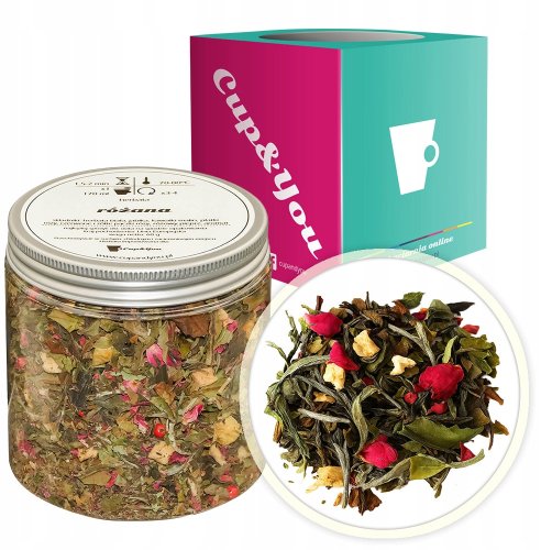 Herbata biała RÓŻANA jabłka maliny płatki i pączki róży różowy pieprz 60g - sypana liściasta herbata PREMIUM Cup&You