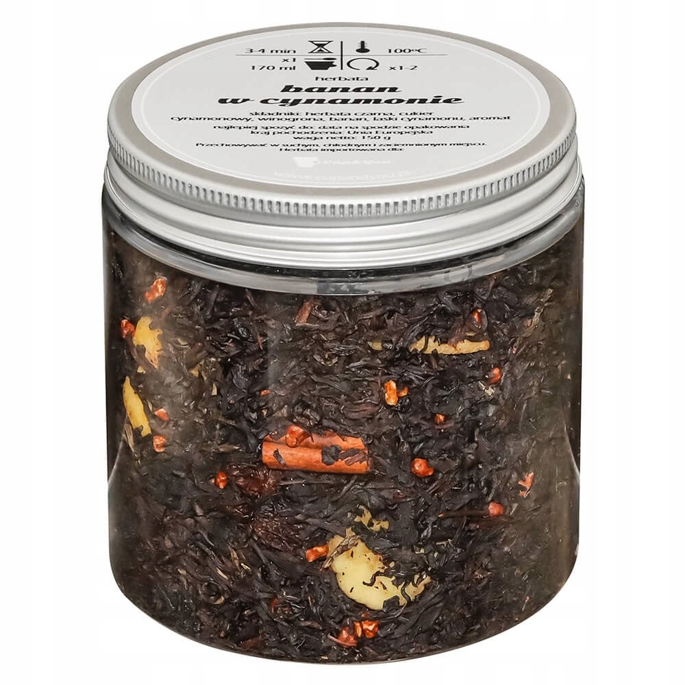 Herbata czarna BANAN W CYNAMONIE winogrona banan laski cynamonu na prezent - sypana liściasta herbata PREMIUM Cup&You