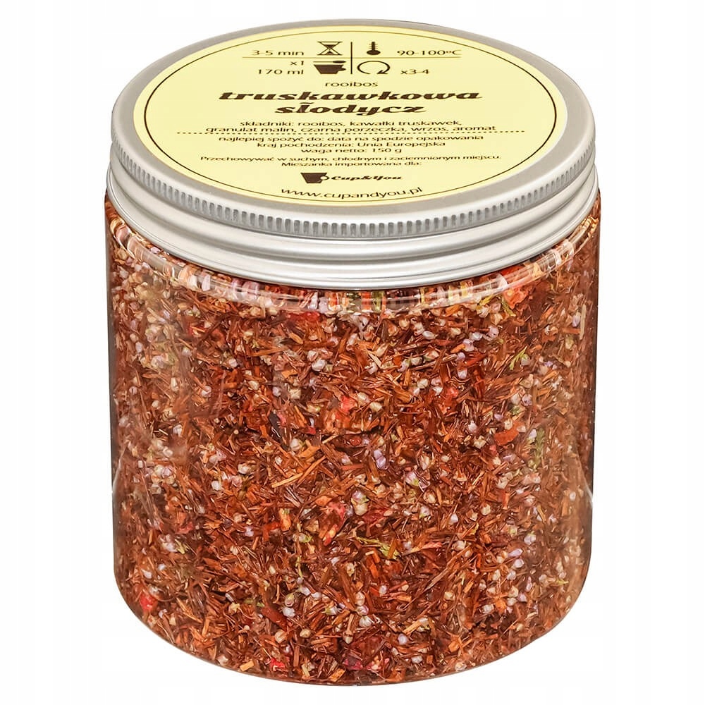 Herbata Rooibos TRUSKAWKOWA SŁODYCZ czerwonokrzew bez kofeiny wrzos 150g - herbata sypana liściasta napar z czerwonokrzewu PREMIUM Cup&You