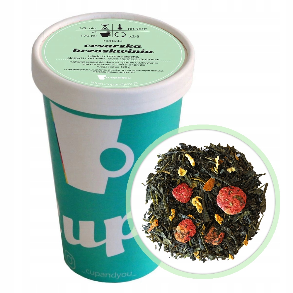 Herbata zielona CESARSKA BRZOSKWINIA kwiat słonecznika truskawki na prezent - herbata liściasta sypana mieszanka napar susz