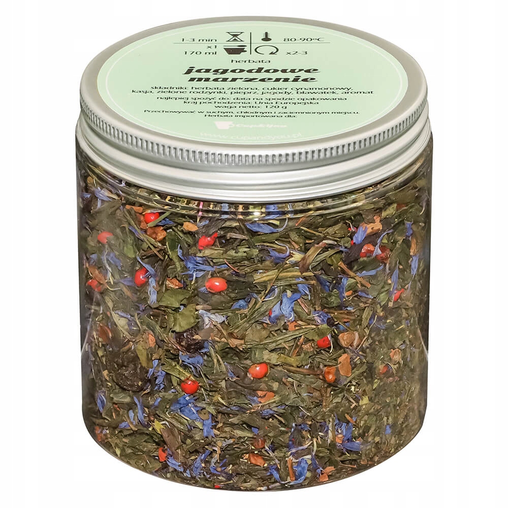 Herbata zielona JAGODOWE MARZENIE jagody bławatek rodzynki na prezent 120g - sypana liściasta herbata PREMIUM Cup&You