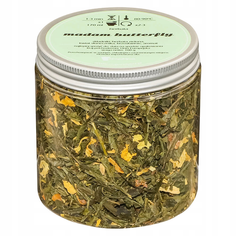 Herbata zielona MADAM BUTTERFLY brzoskwinie kwiat słonecznika 100g - sypana liściasta herbata PREMIUM Cup&You