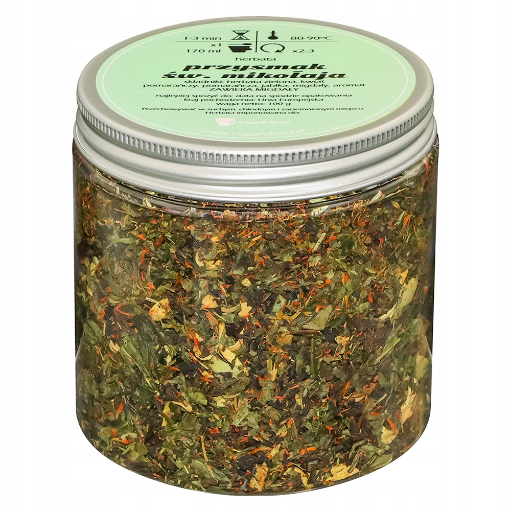 Herbata zielona PRZYSMAK ŚW MIKOŁAJA pomarańcza jabłka migdały 100G - sypana liściasta herbata PREMIUM Cup&You