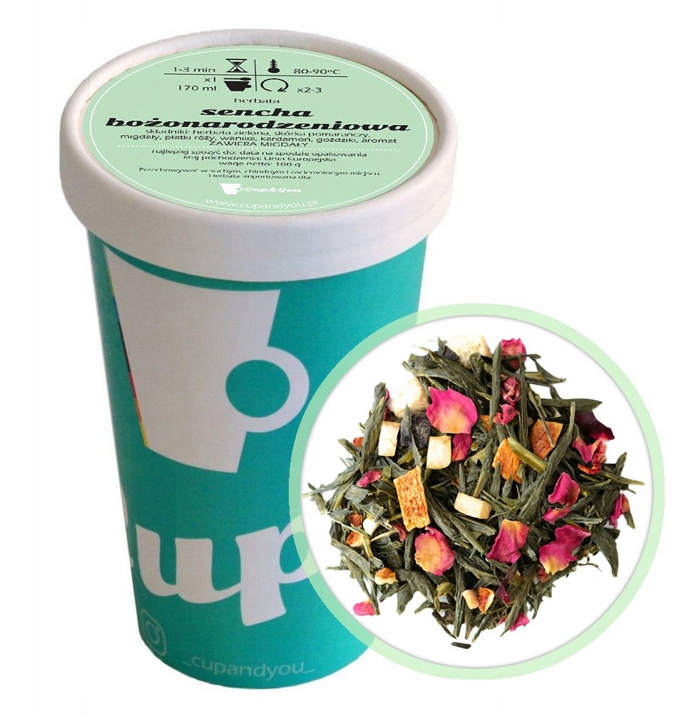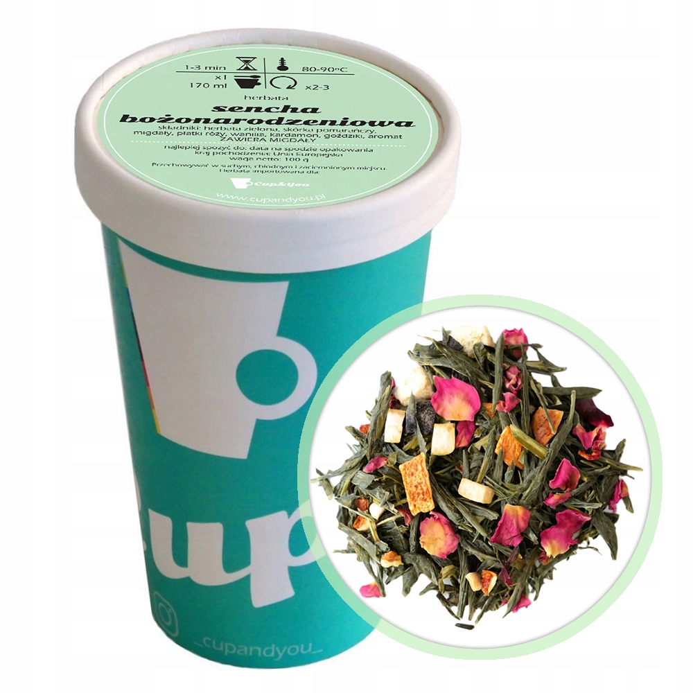 Herbata zielona SENCHA BOŻONARODZENIOWA goździki płatki róży migdały 100g - herbata liściasta sypana mieszanka napar susz