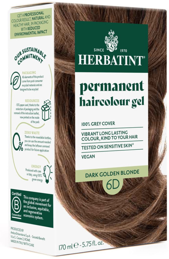 Herbatint Trwała ziołowa farba do włosów Ciemny Złoty Blond (6D) 170 mlHerbatint Trwała ziołowa farba do włosów Ciemny Złoty Blond (6D)