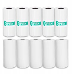 Papier termiczny KANZA to zestaw składający się z 10 rolek, w tym 5 rolek papieru termicznego oraz 5 rolek papieru samoprzylepnego. Ten wszechstronny produkt doskonale sprawdza się w drukowaniu etykiet, paragonów oraz notatek, oferując wysoką jakość wydruków bez potrzeby użycia tuszu. Dzięki specjalnej powłoce termoczułej, papier reaguje na ciepło drukarki, co pozwala na uzyskanie wyraźnych i trwałych wydruków.