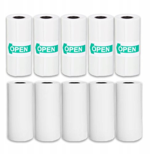 Papier termiczny KANZA to zestaw składający się z 10 rolek, w tym 5 rolek papieru termicznego oraz 5 rolek papieru samoprzylepnego. Ten wszechstronny produkt doskonale sprawdza się w drukowaniu etykiet, paragonów oraz notatek, oferując wysoką jakość wydruków bez potrzeby użycia tuszu. Dzięki specjalnej powłoce termoczułej, papier reaguje na ciepło drukarki, co pozwala na uzyskanie wyraźnych i trwałych wydruków.