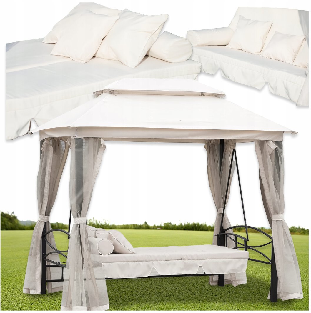 Huśtawka KANZA wyróżnia się wieloma funkcjami, które podnoszą komfort użytkowania. Miękkie poduszki o grubości 5 cm zapewniają doskonałe wsparcie, a beżowy kolor sprawia, że huśtawka harmonijnie wkomponuje się w każdy ogród lub taras, dodając mu elegancji.