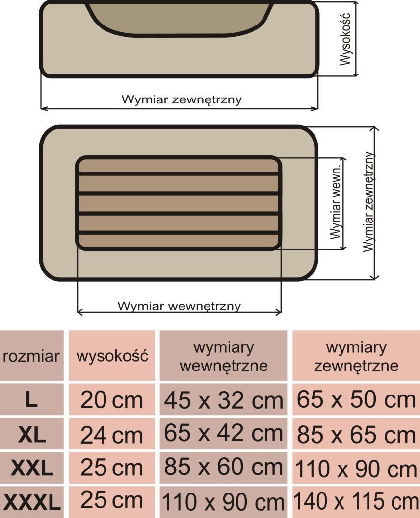 Legowisko wykonano z wytrzymałej tkaniny typu EKOLEN, pianki poliuretanowej oraz włókniny polipropylenowej.