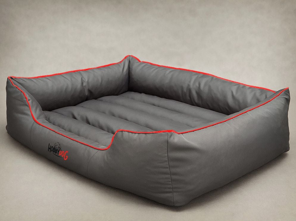 Hobbydog Legowisko Comfort - Szare z czerwoną lamówką XL