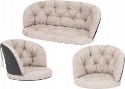 Poduszka składa się z dwóch części: siedziska i oparcia. Można ją przypiąć do mebli za pomocą troczków.