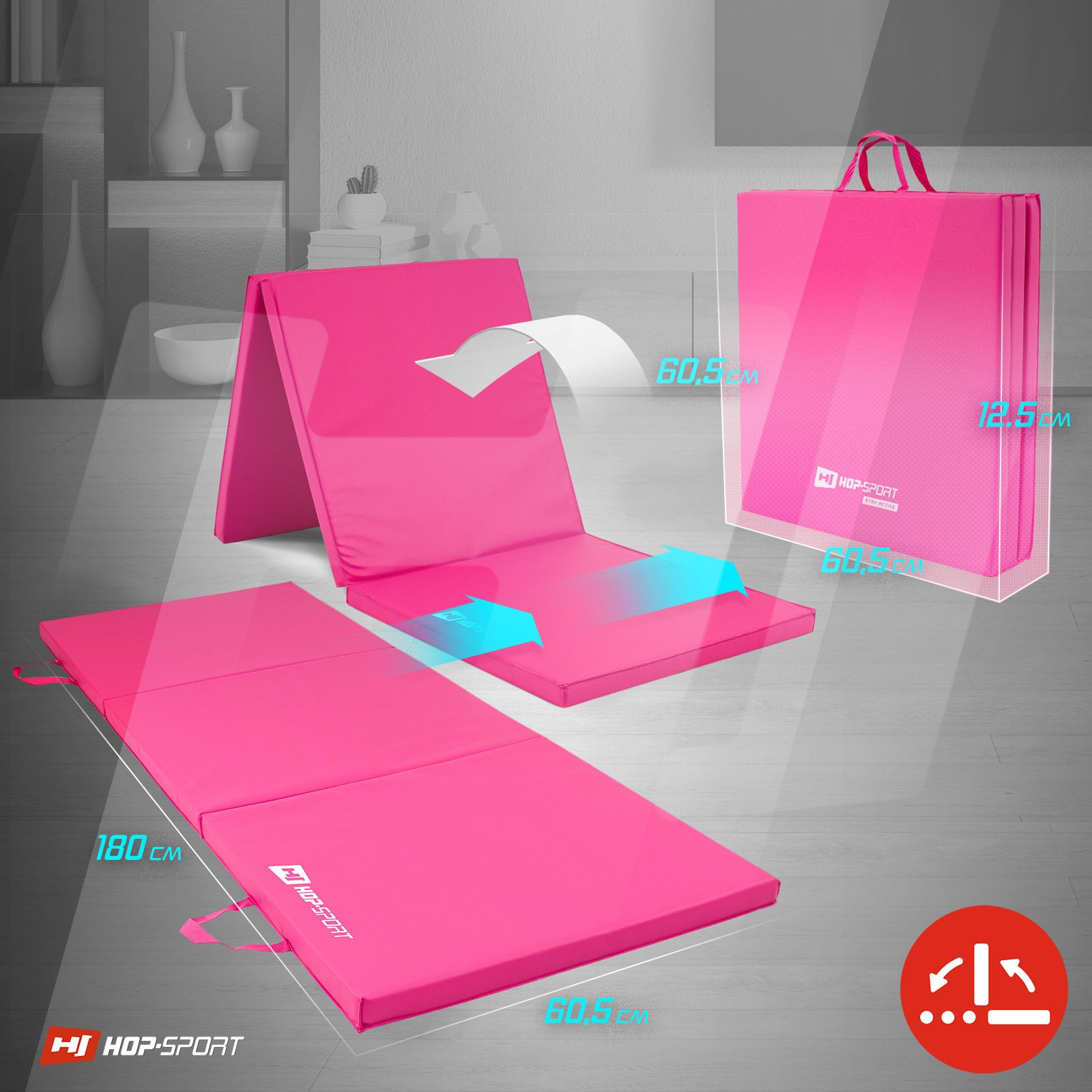 Hop-Sport Materac gimnastyczny 3-częściowy HS-064FM 180 cm x 60.5 cm x 4 cm różowy miękki