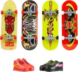 W skład zestawu wchodzą cztery mini deskorolki oraz dwie pary butów, które można łatwo przymocować do desek. Każda deskorolka ma swój unikalny wzór, co sprawia, że zabawa staje się jeszcze bardziej ekscytująca. Dzieci mogą wymieniać buty i deskorolki, co pozwala na tworzenie własnych, niepowtarzalnych kombinacji.
