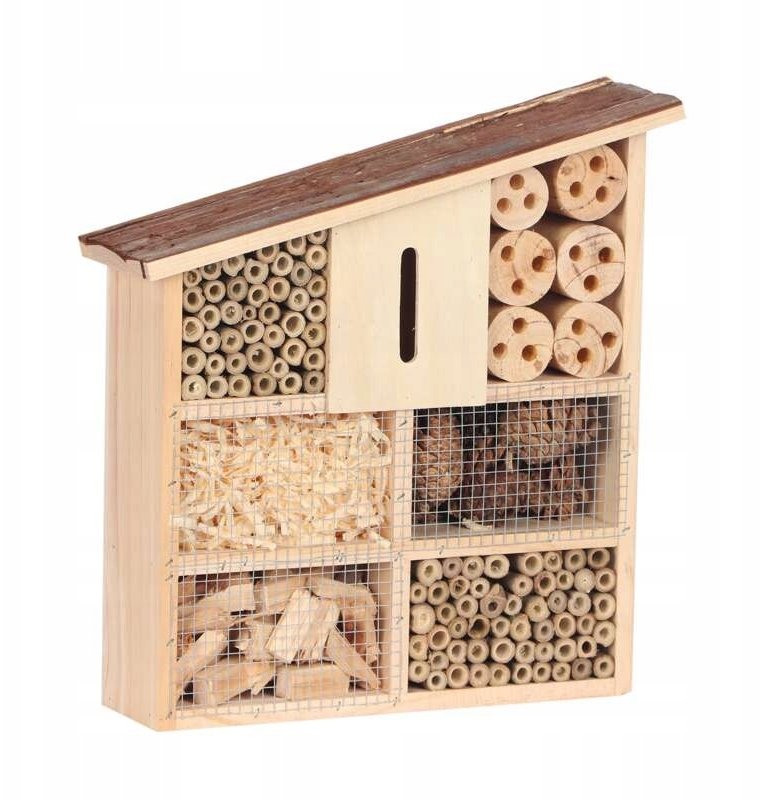 Domek dla owadów to idealne miejsce dla różnych pożytecznych owadów, takich jak skorki, pszczoły, osy, ważki, motyle i chrząszcze. Materiały użyte do produkcji są bezpieczne dla owadów i sprzyjają ich zasiedlaniu, co czyni go doskonałym wyborem dla każdego, kto pragnie wspierać lokalną faunę.