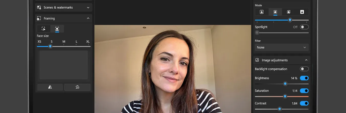 Wyglądaj i brzmij najlepiej podczas każdego spotkania. Zaprezentuj się krystalicznie czysto dzięki kamerze 5MP IR o wysokiej rozdzielczości, która gwarantuje ostrość w każdych warunkach oświetleniowych. Jednocześnie Poly Camera Pro, wspierane mocą obliczeniową NPU, działa jak Twój osobisty reżyser: funkcja Auto Frame utrzyma Cię w kadrze, nawet gdy się poruszasz, a inteligentna korekta zadba o naturalny kontakt wzrokowy. Możesz także profesjonalnie rozmyć tło, dodać firmowe znaki wodne lub filtry – wszystko to bezpośrednio we wszystkich aplikacjach konferencyjnych.