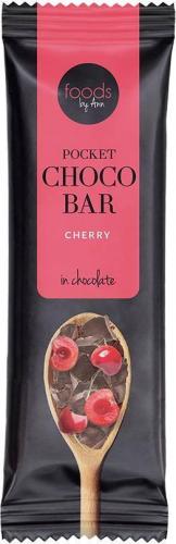 Foods by Ann zostało założone przez Annę Lewandowską. Pocket Choco Bars Wiśnia w czekoladzie to niezwykłe smakołyki owocowo-orzechowe oblane najlepszą czekoladą z zawartością 60% kakao, a w składzie nie ma białego cukru, laktozy ani lecytyny. Batony są wykonane głównie z daktyli z dodatkiem migdałów i wiśni. Wiśnie swój czerwony kolor zawdzięczają antocyjanom – barwnikom o właściwościach przeciwutleniających. Substancje te chronią organizm przed nowotworami poprzez usuwanie wolnych rodników tlenowych. Czekolada działa uspakajająco i przeciwdepresyjnie. Batonik idealnie sprawdzi się jako zaspokojenie ochoty na coś słodkiego, bez zbędnych wyrzutów sumienia.
