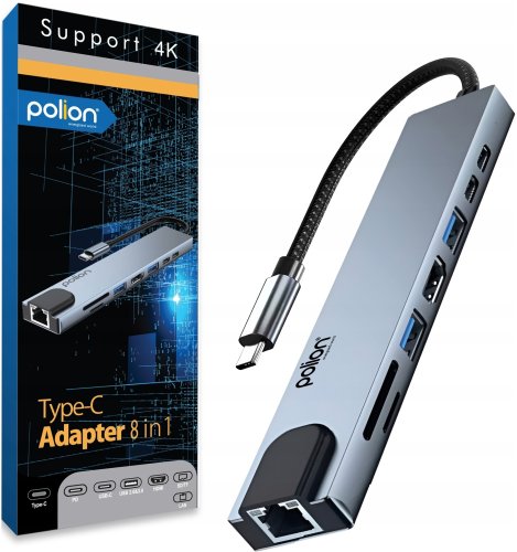 HUB USB-C 2*USB-A + 2*USB-C + RJ45 + HDMI + SD/TF