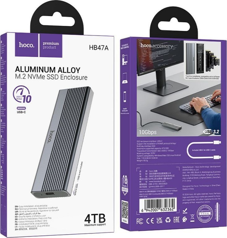 Adapter HB47A jest kompatybilny z szeroką gamą systemów operacyjnych, w tym Windows, Mac, Linux oraz Android. Obsługuje dyski SSD o pojemności do 4 TB, co czyni go wszechstronnym rozwiązaniem dla każdego użytkownika. Niezależnie od tego, czy potrzebujesz dodatkowej przestrzeni na dane, czy chcesz przenieść pliki między urządzeniami, ten adapter spełni Twoje oczekiwania.