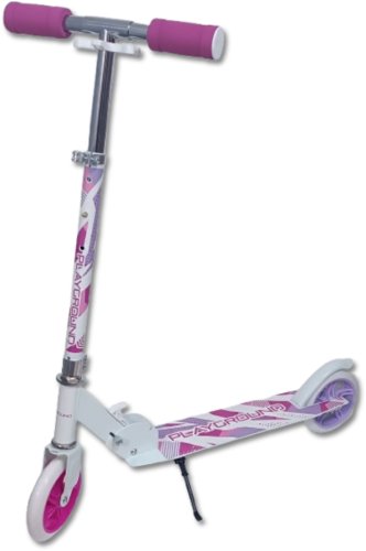Hulajnoga dla dzieci marki PlayGround o całkowitej długości 73cm, która przeznaczona jest dla osób od 6 roku życia i maksymalnej masie ciała do 70kg. Hulajnoga posiada wygodny, antypoślizgowy podest o wymiarach 10x30cm oraz funkcje łatwego składania, dzięki czemu składa się w prosty sposób, a po złożeniu zajmuje niewiele miejsca (11x24,5x67cm), co ułatwia jej przenoszenie i przechowywanie. Konstrukcja hulajnogi jest bardzo wytrzymała i niezwykle lekka, waży tylko 2,6kg. Hulajnoga posiada 3 stopniową regulację steru (73cm, 80cm oraz 85cm), oraz wygodne rączki gwarantujące pewny chwyt. W hulajnodze zastosowano poliuretanowe koła o średnicy 14,5cm z wysokiej jakości łożyskami ABEC-7, które zapewniają stabilność i wygodę podczas jazdy. Hulajnoga posiada błotnik nad tylnym kółkiem pełniący rolę hamulca, stopkę oraz pasek transportowy ułatwiający przenoszenie złożonej hulajnogi. Produkt poprawia koordynację ruchową, rozwija zdolność utrzymywania równowagi, a także kondycję.