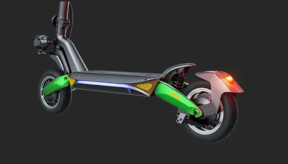 Model R6 wyposażony jest w wahaczowo-amortyzowane przednie i tylne koło. Dzięki temu unikniesz bólu nadgarstków i kolan, a do tego bez większych problemów pokonasz mniejsze przeszkody i nierówności.