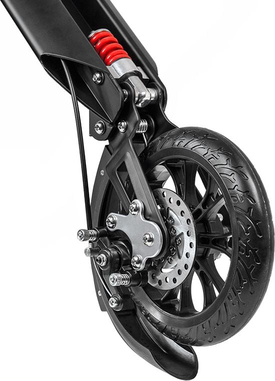Mechaniczna funkcja pozwalająca składać hulajnogę jest bardzo przydatnym i wygodnym usprawnieniem w podróżowaniu. Złożony pojazd zajmuje o wiele mniej miejsca i możesz go zabrać do autobusu lub pociągu nie martwiąc się brakiem wolnej przestrzeni. Rączka ustawia się równolegle do podestu dzięki czemu kształtem nie przypomina litery „L”. Łatwiej będzie ją włożyć do bagażnika i zabrać w daleką podróż, na przykład na wakacje.