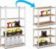Funkcjonalny i stabilny regał magazynowy w kolorze białym, który znakomicie sprawdzi się w:
