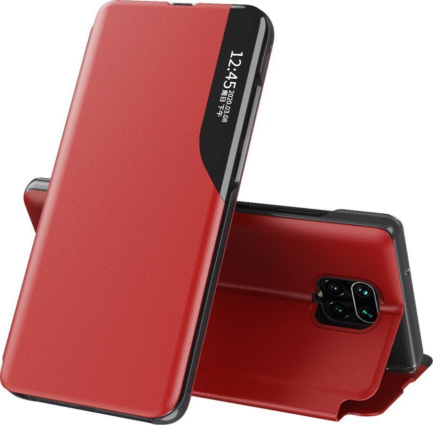Hurtel Eco Leather View Case elegancki futerał etui z klapką i funkcją podstawki Xiaomi Redmi Note 9 Pro / Redmi Note 9S czerwony uniwersalny