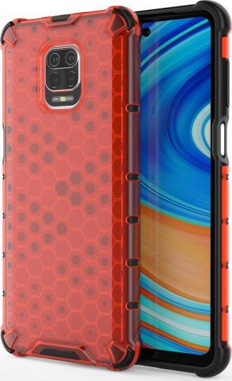 Hurtel Honeycomb etui pancerny pokrowiec z żelową ramką Xiaomi Redmi Note 9S czerwony