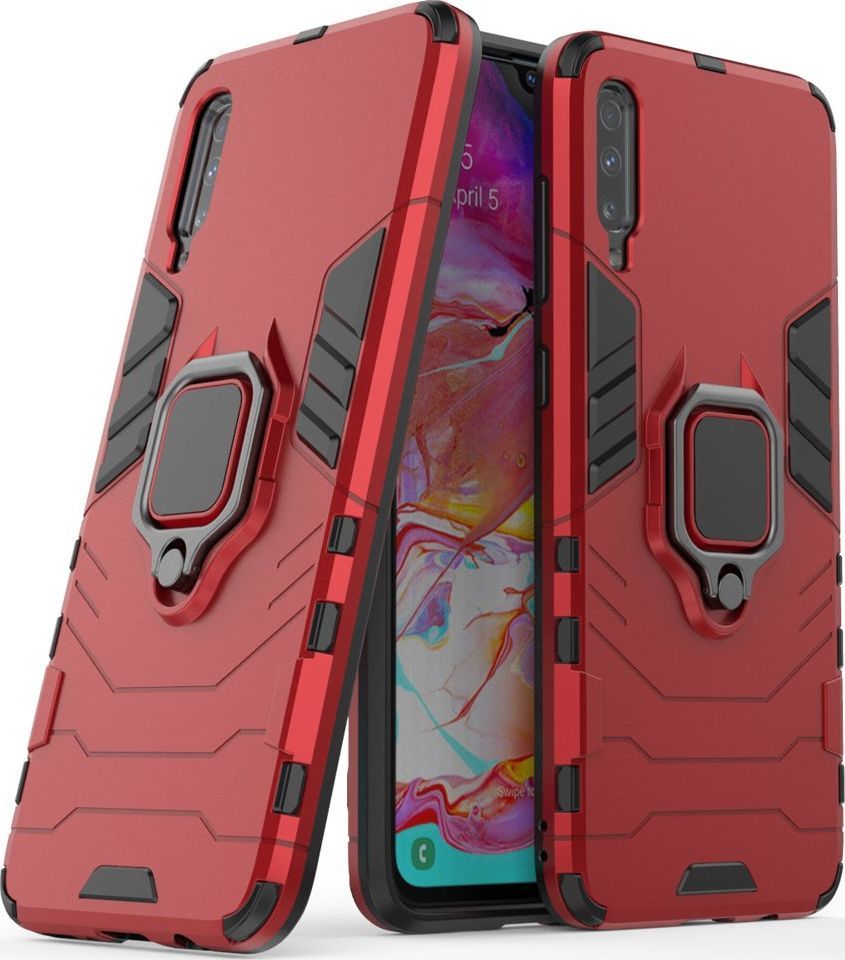 Hurtel Ring Armor pancerne hybrydowe etui pokrowiec + magnetyczny uchwyt Samsung Galaxy A70 czerwony uniwersalny