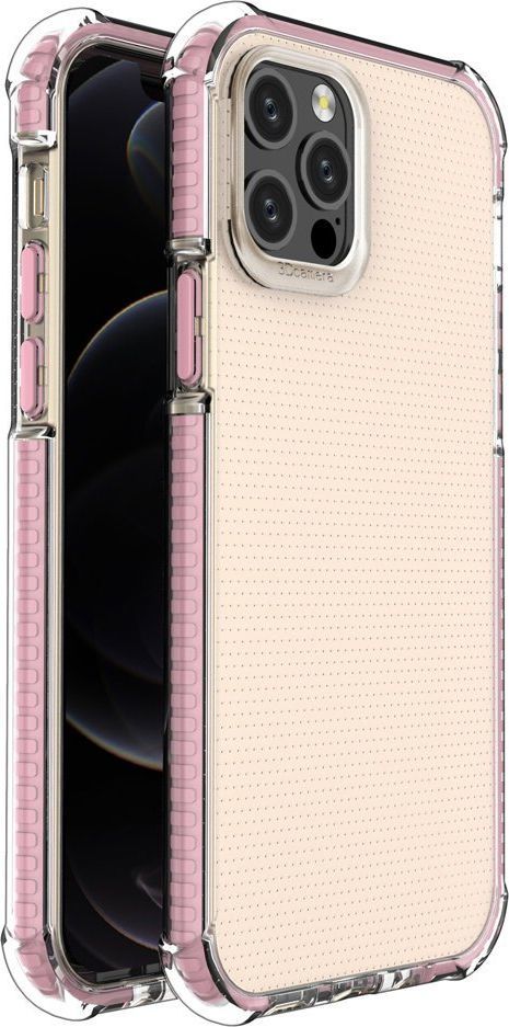 Hurtel Spring Armor żelowy elastyczny pancerny pokrowiec z kolorową ramką do iPhone 12 Pro / iPhone 12 różowy